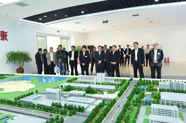 圖為山東省經信委副主任王信(前排右三)一行參觀我公司展廳時的情景