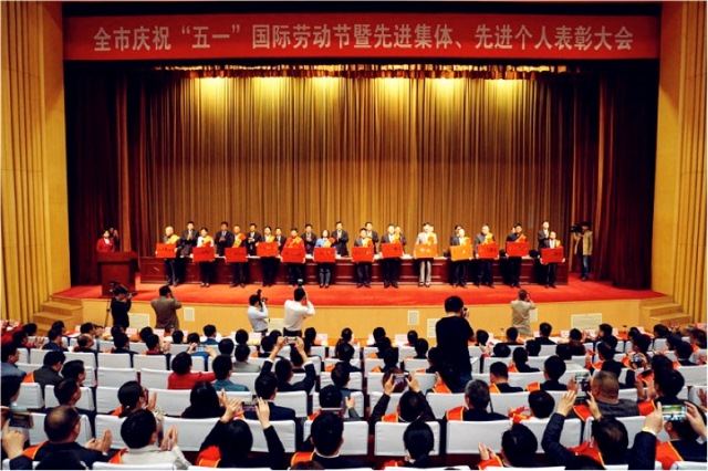 上圖為全市 “五一”國際勞動節暨先進集體、先進個人表彰大會現場