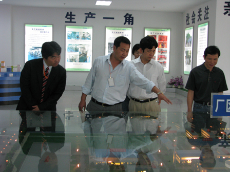 上圖為日本客人廣中先生(前排右二)等參觀公司展廳,公司副總孫松(前排左二)陪同