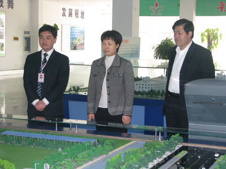 2008年11月12日,羅莊區委副書記、區政府區長人選劉淑秀(前排右二)蒞臨我公司指導工作,參觀了展廳、廠區、對公司的發展運營情況做了詳細了解。羅莊街道黨工委書記張連勝(前排右一)等領導陪同。